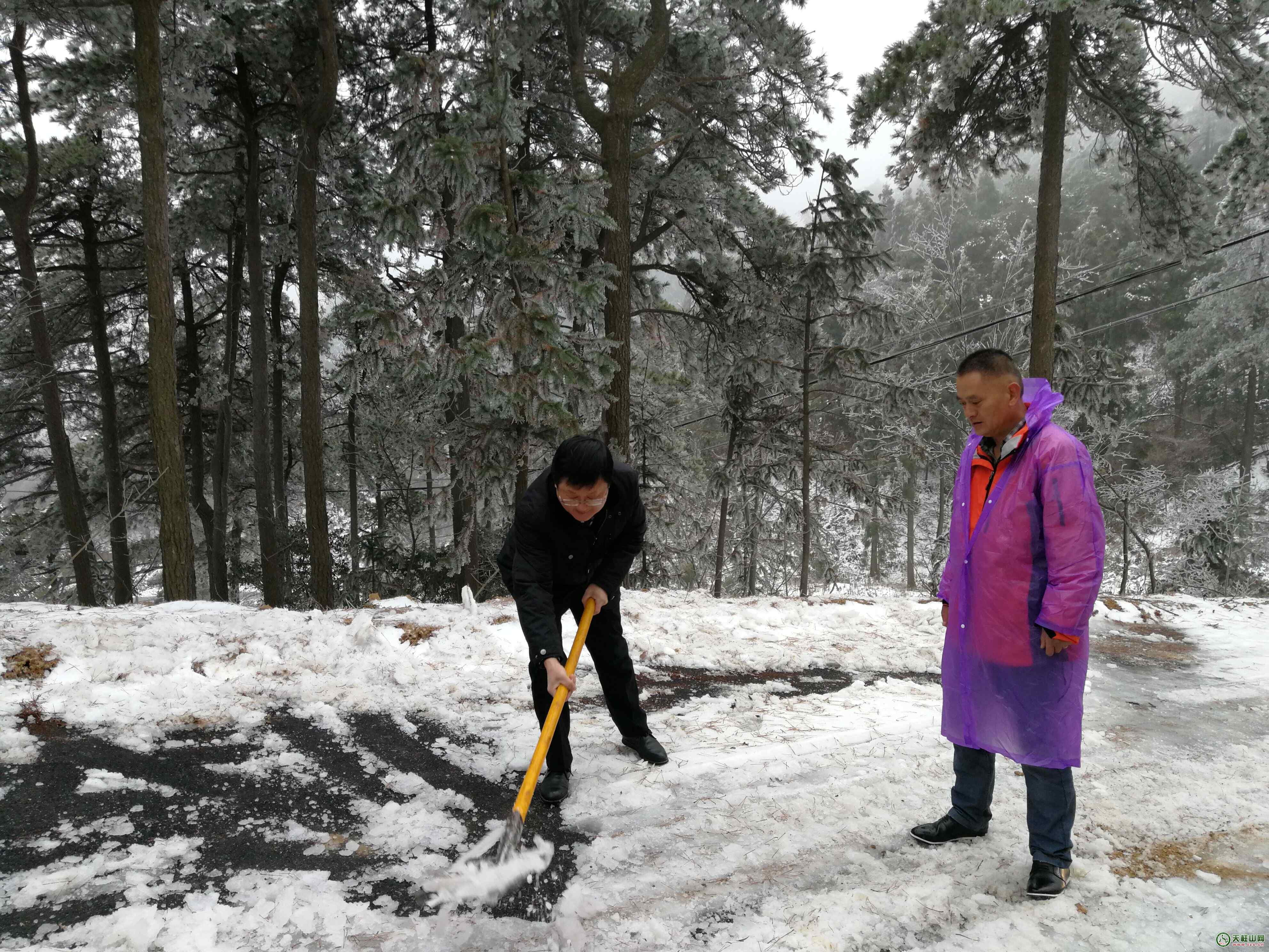 ? ? 隨即,天柱山管委會啟動應(yīng)急預(yù)案,對道路掃雪除冰工作進(jìn)行安排部署。12月8日一早,天柱山管委會組織出動應(yīng)急救援人員60余人,對重點路段拋撒了融雪劑,全面開展掃雪除冰工作,大家不畏嚴(yán)寒,揮舞著鐵鍬和掃帚,相互配合,你鏟我掃。同時市地方公路局也組織人員全力配合應(yīng)急救援人員的工作。