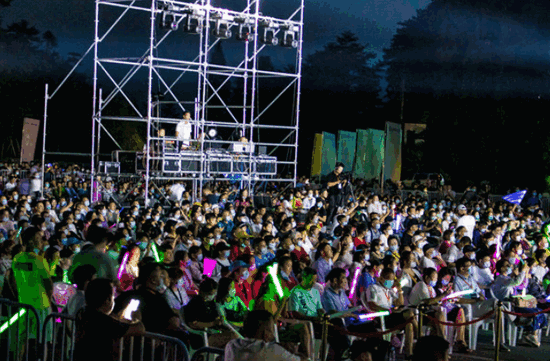 與星空為伴,以音樂交友。8月15日晚,2020中國天柱山星空音樂節(jié)在天柱山大龍窩游客中心廣場激情開唱。活動(dòng)現(xiàn)場,集聚了電音、美女、燈光秀、星空帳篷體驗(yàn)、星空創(chuàng)意集市、“浪在25度天柱山”挑戰(zhàn)賽等所有狂歡元素的天柱山,猶如一道夏日火焰,點(diǎn)燃夏夜激情,現(xiàn)場千余名觀眾嗨翻全場。市委副書記余華明,市委常委、天柱山管委會(huì)副主任涂高生,市委常委、副市長王軍,風(fēng)景區(qū)紀(jì)委書記江霞,天柱山風(fēng)景區(qū)黨委委員、旅游度假區(qū)主任張方,市文化旅游體育局局長李桃生,天柱山旅游公司董事長汪全海,天柱山鎮(zhèn)及水吼鎮(zhèn)有關(guān)負(fù)責(zé)同志等全程參加音樂節(jié)活動(dòng)。