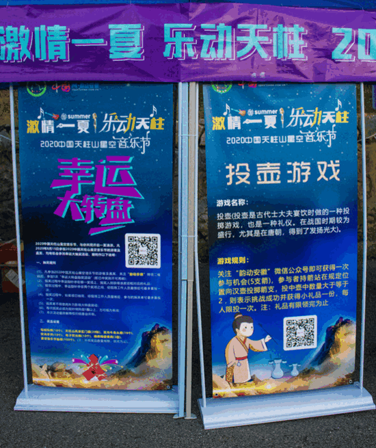 2020年中國天柱山星空音樂節(jié)由天柱山管委會(huì)、潛山市文化旅游體育局主辦,安徽天柱山旅游發(fā)展有限公司、中國網(wǎng)韻動(dòng)安徽頻道、天柱山鎮(zhèn)人民政府、水吼鎮(zhèn)人民政府承辦。