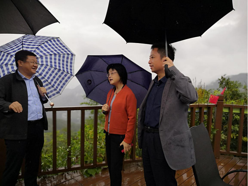 ? ??10月4日,省文化和旅游廳袁華廳長(zhǎng)采取“四不兩直”方式,輕車簡(jiǎn)從冒雨來天柱山檢查指導(dǎo)工作。