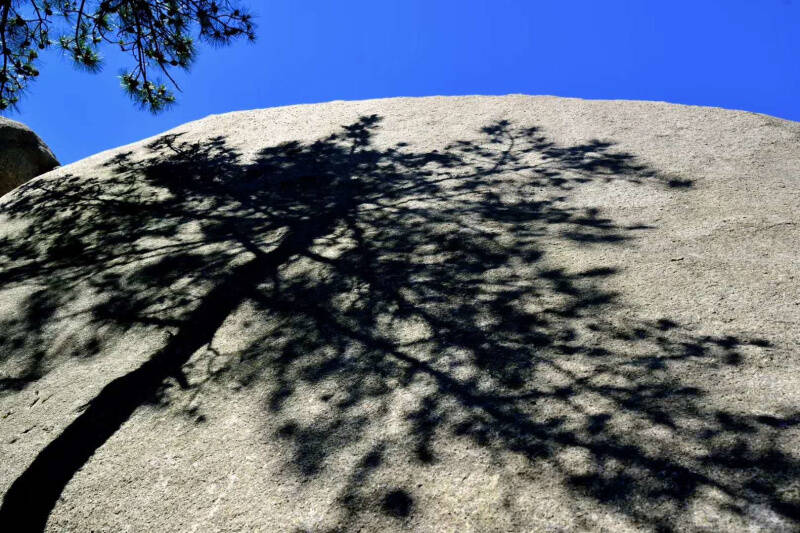 這些生長(zhǎng)在石縫里的松樹(shù),根部能夠分泌出一種酸性的物質(zhì),腐蝕石頭的表面,使其化出養(yǎng)分供自己吸收。為了從石頭里尋覓生機(jī),也為了牢牢抓住絕壁,它們的根日日夜夜與石頭搏斗著,最終穿入堅(jiān)如鋼鐵的石體,讓人感受到寧?kù)o之中蘊(yùn)藏的無(wú)窮力量。