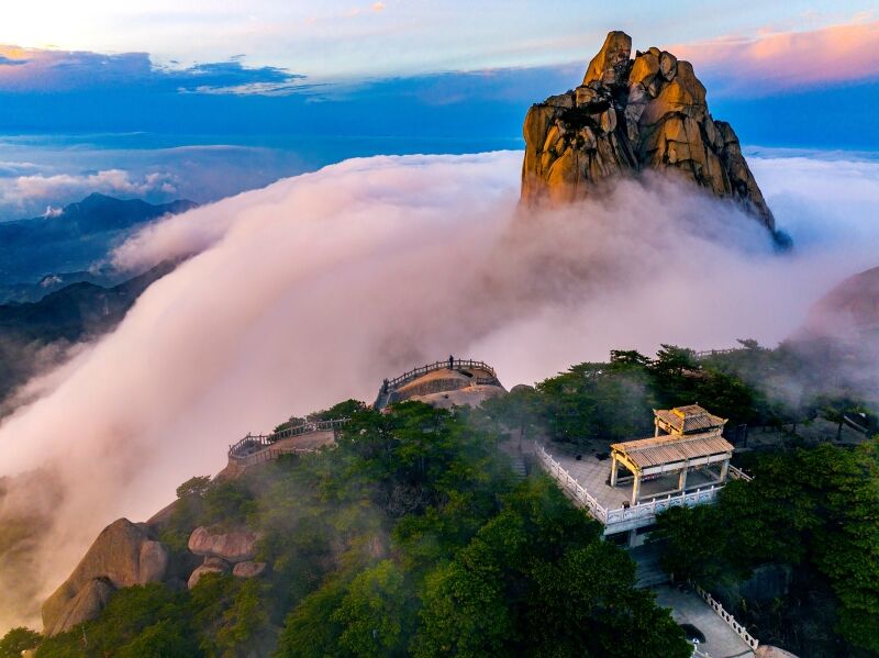 天柱山主峰天柱峰,又名筍子尖,海拔1489.8米,為江淮地區(qū)最高山峰,因其如“擎天一柱”深居山脊之上,孤峰突起、石骨嶙峋、直上云霄,故得名天柱山。這里自然風(fēng)光雄奇與靈秀并存,兼具黃山之奇、廬山之秀,人文景觀博大精深,與道教、佛教、歷代名人都有深厚淵源。
